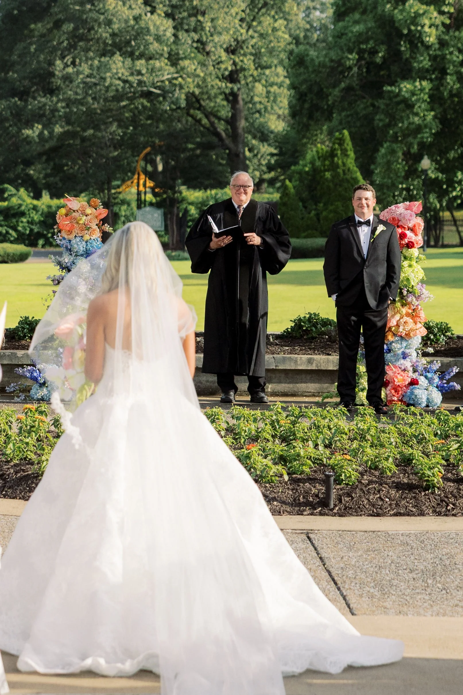 Kayla and Zack gathered their closest family and friends in Memphis, Tennessee, for a vibrant celebration set against the historic beauty of the Pink Palace Museum. Beneath the grandeur of the mansion’s exterior, they exchanged vows in an outdoor ceremony surrounded by lush, colorful florals and thoughtfully designed details, including a custom wedding crest and bespoke signage. Kayla’s timeless lace gown and Zack’s classic tuxedo reflected an elegance that carried seamlessly into the evening, where joyful outfit changes and a lively dance floor invited guests to celebrate late into the night. Radiant, refined, and full of unforgettable joy.