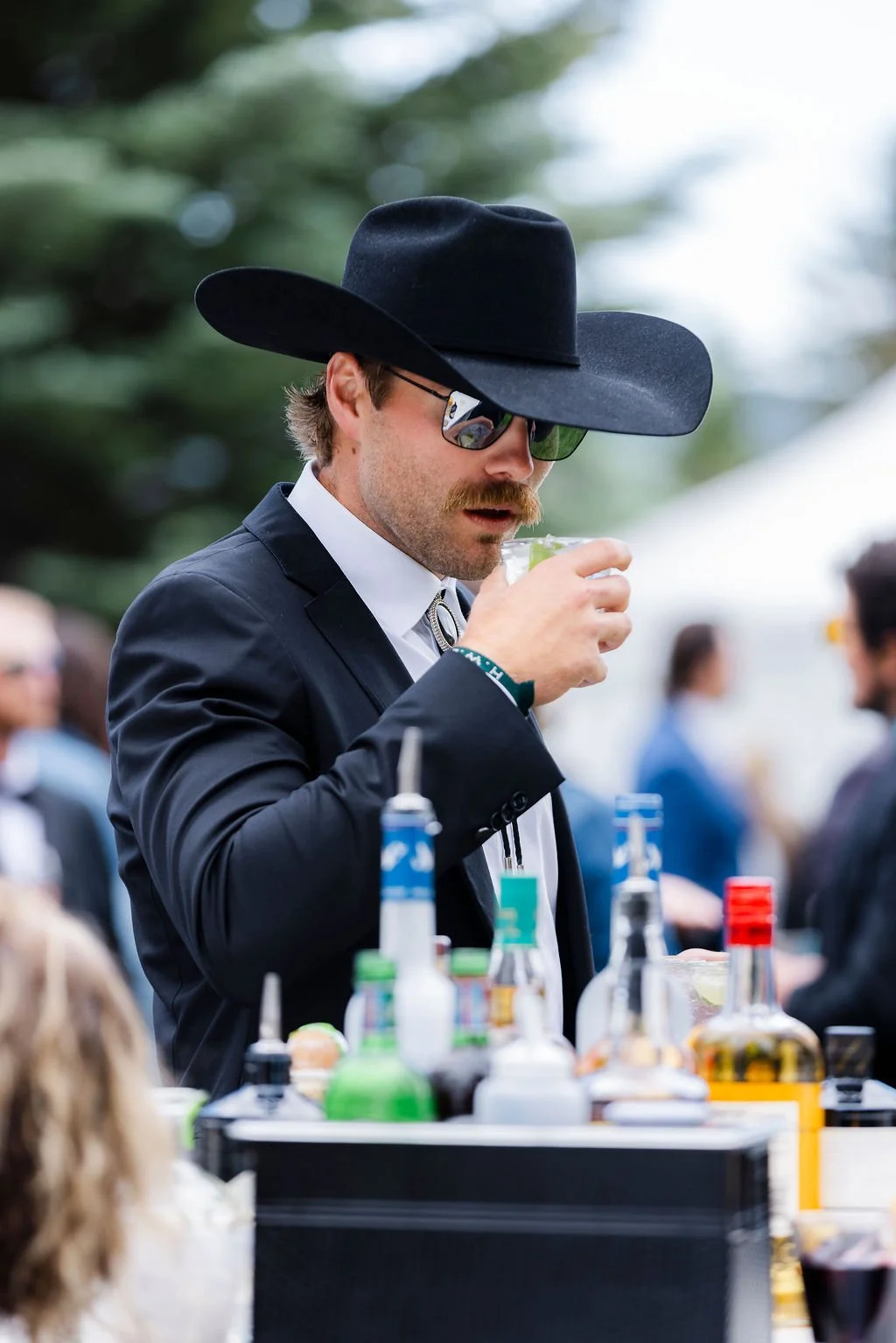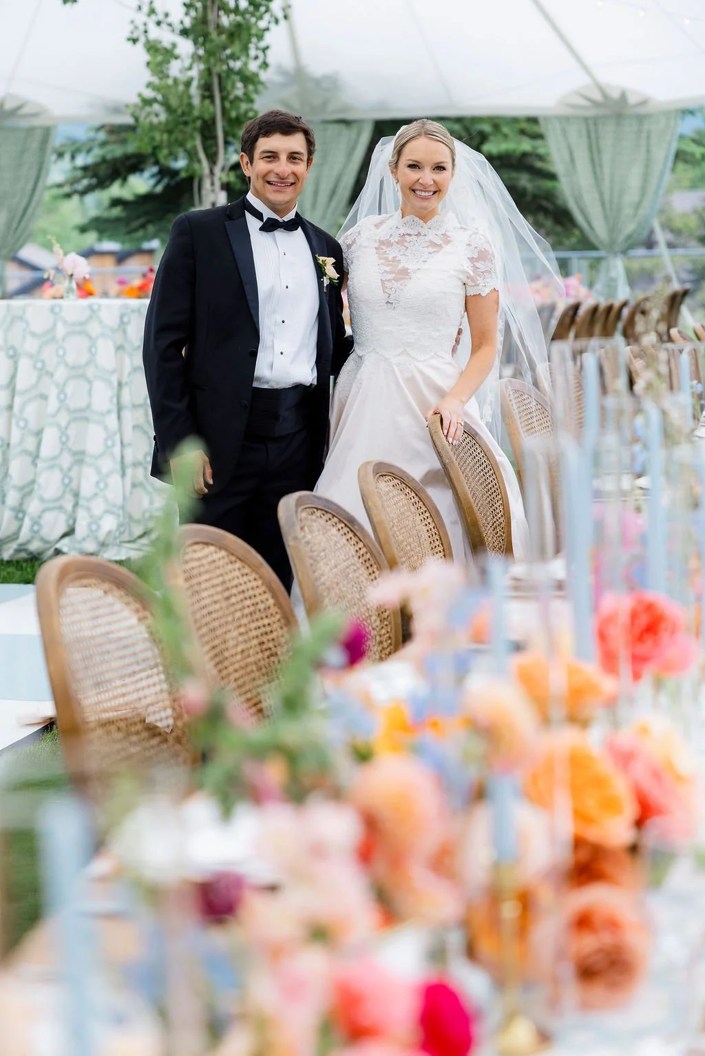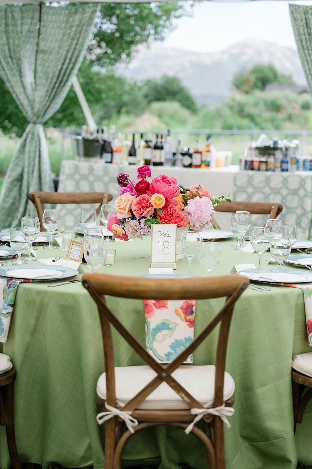 Emma and John David both grew up in the South, but it was the mountains out West that ultimately brought their paths together. After building a life side by side in Teton Valley, they invited their southern family and friends to experience the place they now call home during a perfect summer weekend of celebration. Thoughtful design centered around a hand-illustrated trout, created by the bride’s father in honor of John David’s love of fly fishing. Soft greens and blush pinks layered the linens and florals, while handwritten notes and custom menus added deeply personal touches. Every detail was intentional, creating a celebration that felt timeless, heartfelt, and beautifully balanced between Southern charm and Western beauty.