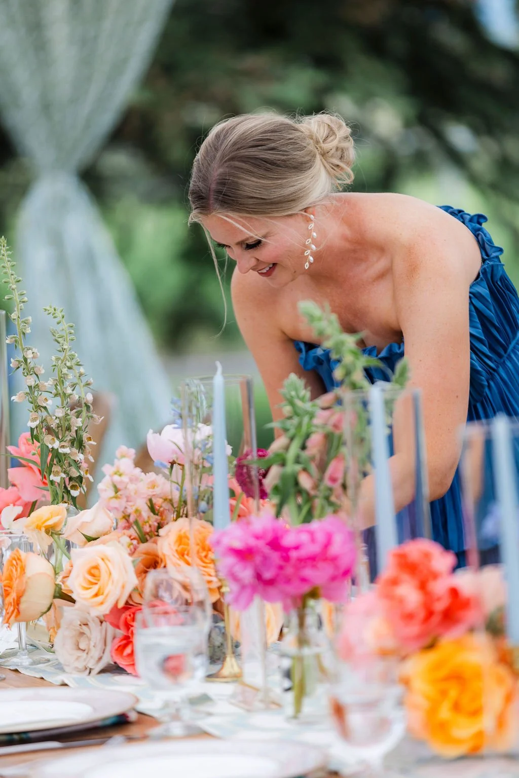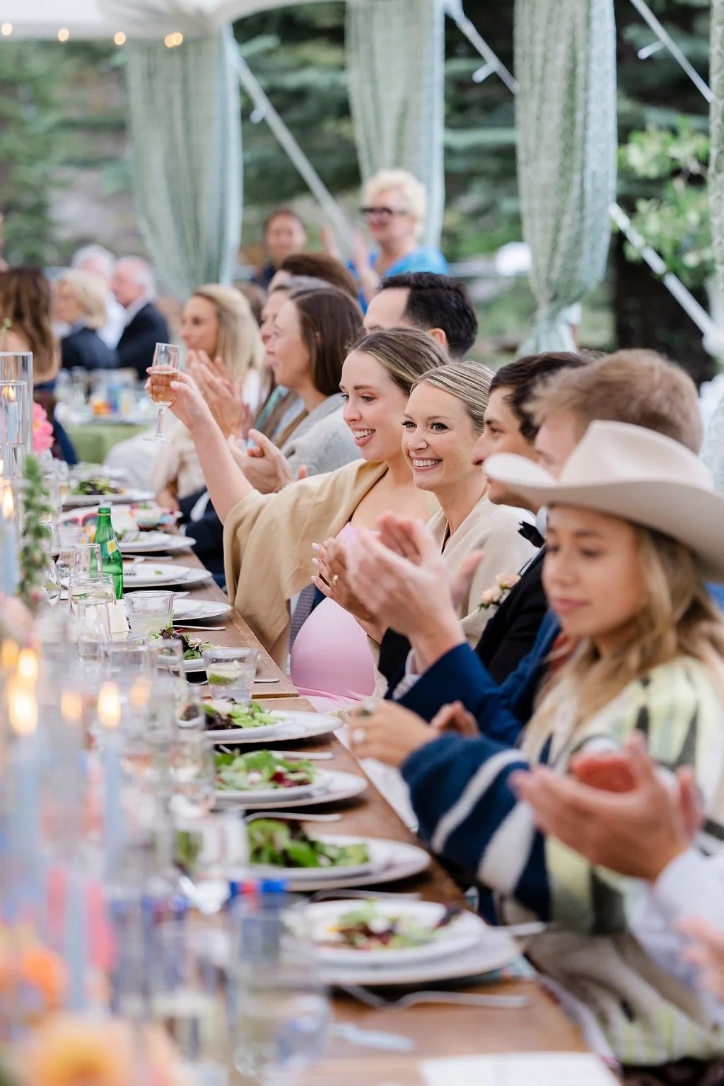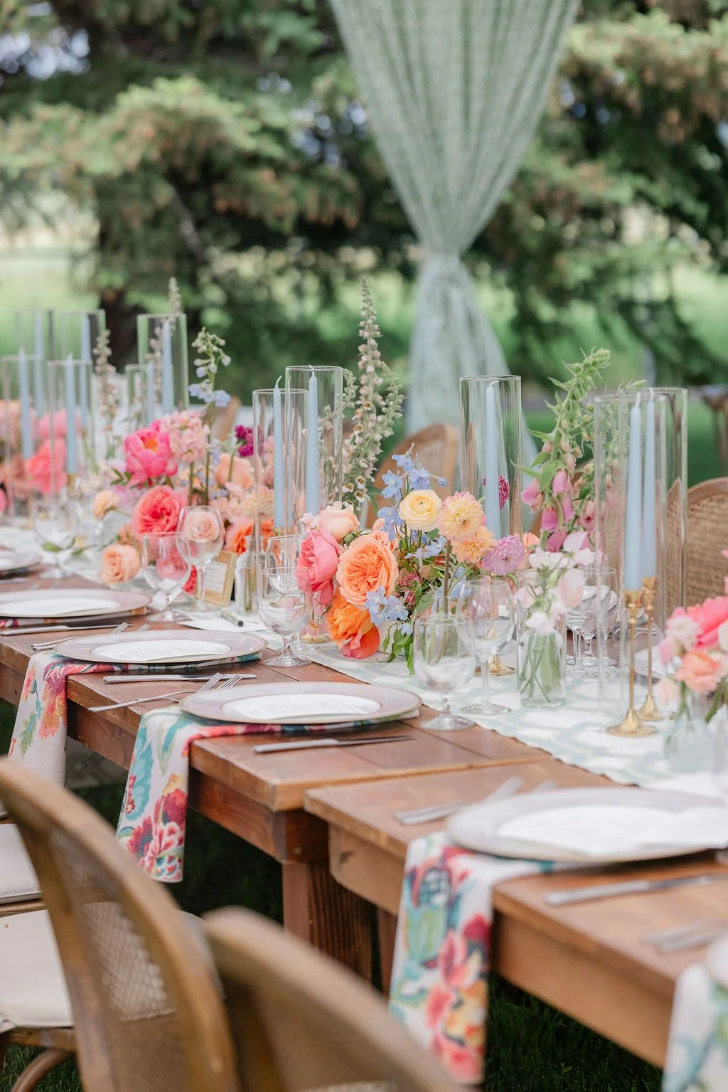 Emma and John David both grew up in the South, but it was the mountains out West that ultimately brought their paths together. After building a life side by side in Teton Valley, they invited their southern family and friends to experience the place they now call home during a perfect summer weekend of celebration. Thoughtful design centered around a hand-illustrated trout, created by the bride’s father in honor of John David’s love of fly fishing. Soft greens and blush pinks layered the linens and florals, while handwritten notes and custom menus added deeply personal touches. Every detail was intentional, creating a celebration that felt timeless, heartfelt, and beautifully balanced between Southern charm and Western beauty.